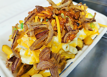 “The Highlander Cafe Bus is an award-winning food truck that serves breakfast, lunch, and coffee. They use locally sourced ingredients to make fresh, delicious food and offer friendly service. This truck has the best view in Aberdeen Beach and is known for dishes like the New Yorker Hot Dog, Coffee Latte, English Breakfast, Chips Topped Burger and Fries, Hamburger, and Full Scottish Breakfast. They offer takeaway service at competitive prices, free street parking, and online ordering for your convenience. They serve a selection of home-baked cakes and locally-made ice cream. The upper deck seats up to 30 people, offering a great view of the beach and the city.”